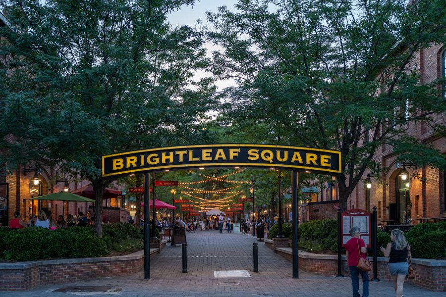 Brightleaf Square is a collection of Neo-Romanesque brick tobacco warehouses redeveloped in 1981. It is now a popular gathering spot with a central courtyard, shopping and dining. Brightleaf Square holds a number of Durham's most treasured dining options. Grab a coffee at Gojo by Goorsha. Savor a bowl of tonkotsu ramen or a katsu sando at Rose's Noodles, Dumplings & Sweets. Enjoy a night of fun and drinks at Clouds Brewcade + Kitchen.