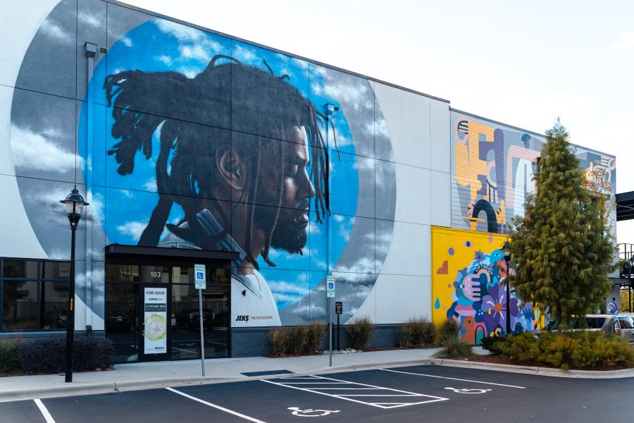 Visit UHill Walls to view JEKS ONE's mural of J. Cole. Photo: Discover Durham