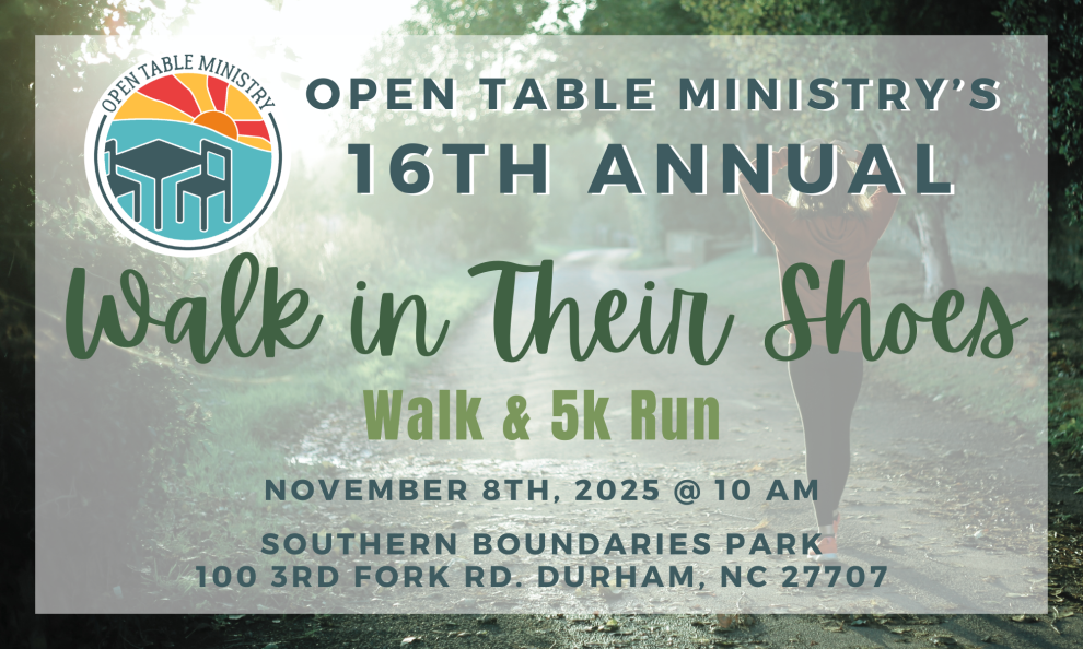 Open Table Ministry is an independent 501(c)(3) nonprofit serving Durham's homeless community since 2009.