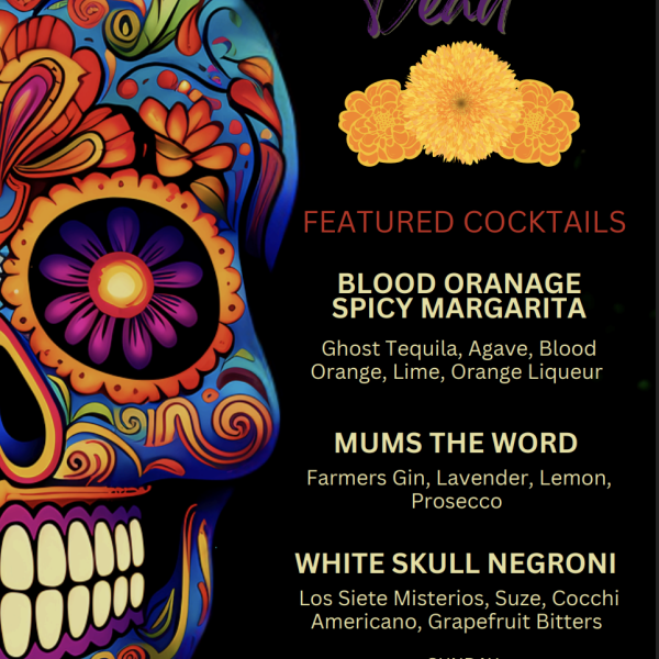 Join in to celebrate Día de los Muertos with vibrant colors, lively spirits, and specialty cocktails crafted just for the occasion!