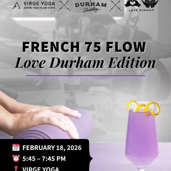 Virge Yoga ✕ Durham Distillery Conniption Bar presents…French 75 Flow | Love Durham Edition ✨