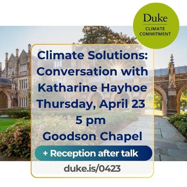 Climate Solutions: Conversation with Katharine Hayhoe at Duke University