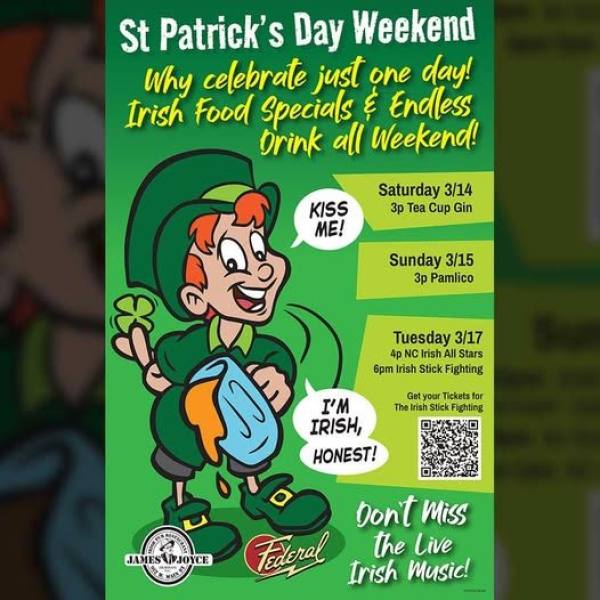Celebrate St. Patrick's Day with The Federal & James Joyce all weekend. They'll be rocking all weekend on the back patio and...