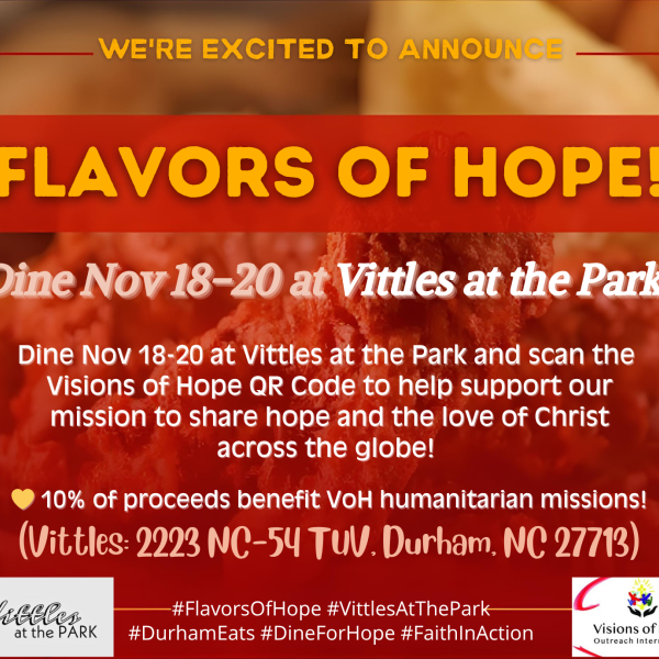 Join in for Flavors of Hope—a 3-day community dining event where 10% of all proceeds mentioning VoH at Vittles at the Park will benefit...