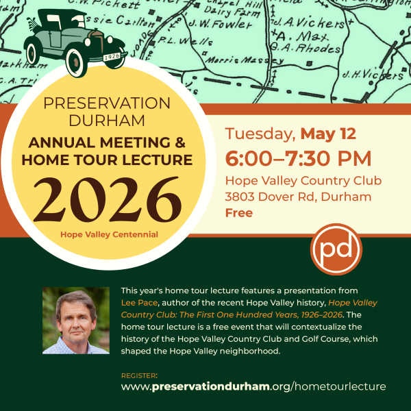 Preservation Durham 2026 Home Tour Lecture and Annual Meeting