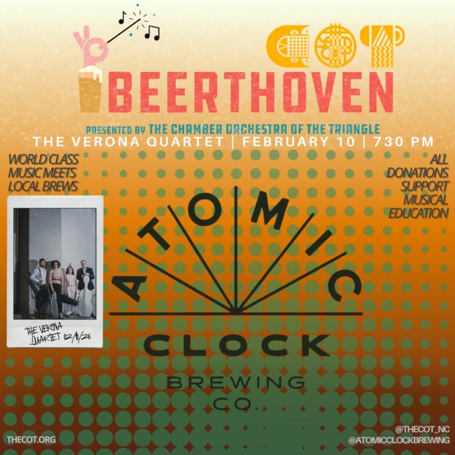 For this edition, The Verona Quartet— praised by The New York Times and heard on stages like Carnegie Hall, Wigmore Hall, and the Kennedy Center—steps into the brewery for a rare, relaxed appearance you won’t find anywhere else. Our favorite part: they specially curate the program just for you! These donation-only evenings directly support The COT’s education initiatives, helping fund programs that bring live music to classrooms, students, and young musicians across our communities. Prestige meets pints. This is BEERthoven, y'all. Pull up early as seats run out!