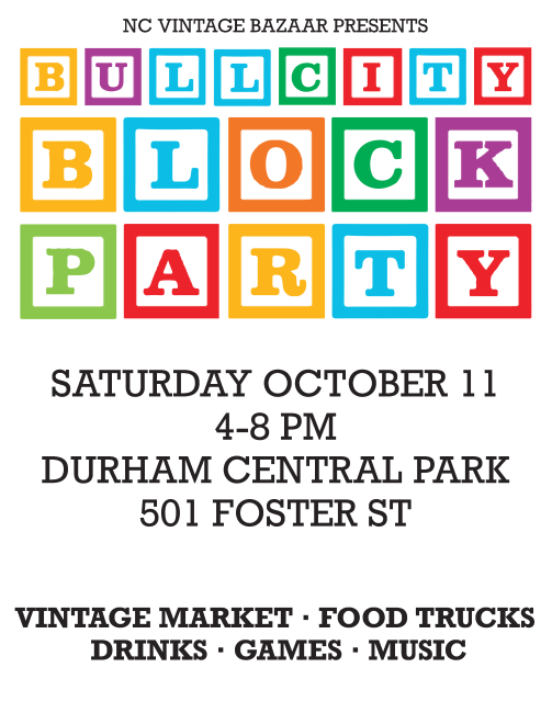 NC Vintage Bazaar is back in downtown Durham for the vintage block party of your dreams! They're shutting down Foster Street for an evening of fun, food trucks, music, games, drinks and of course the best vintage vendors around. Do not miss this FREE ADMISSION event at Durham Central Park.