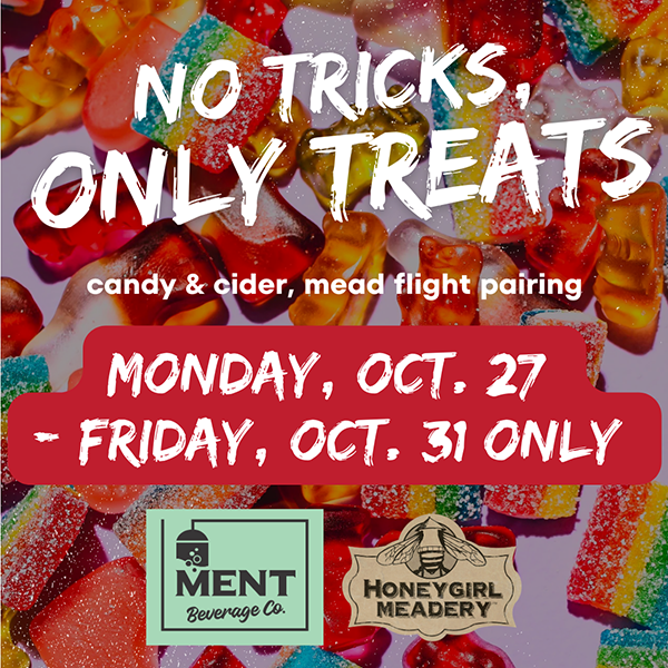 Adults love candy too and what goes best with candy but locally-made dellicious mead & cider? No tricks, only treats, our week of this pairing offering is sure to please!