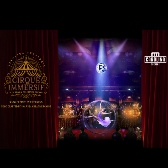 Nothing like this has ever been seen in the Triangle or the state. A brand-new event conceived by the Carolina Theatre, the show is created by Circus EVO with artists from all over the country and the continent. Dinner is crafted by Snap Pea Creative Dining, famous for their luxurious pop-up dinners in unusual spaces, such as a river, a bridge, or a planetarium.