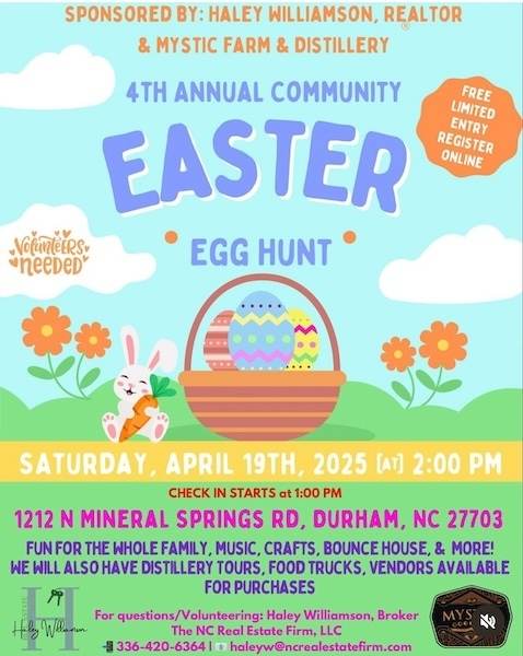 Join the Mystic Team and Haley Williamson, Realtor, for a family friendly Easter Egg Hunt and games! The kids will enjoy exploring the property for brightly colored treasures, making Easter themed crafts, games, and a bouncy house while parents can enjoy a tour of the distillery, free tastings, and maybe a cocktail or two!