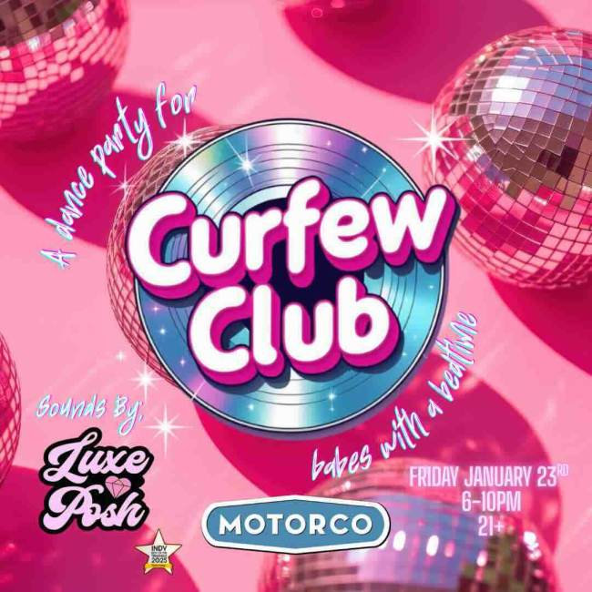 Curfew Club: a dance party for babes with a bedtime. Come as you are. Dance hard. Tap out early.