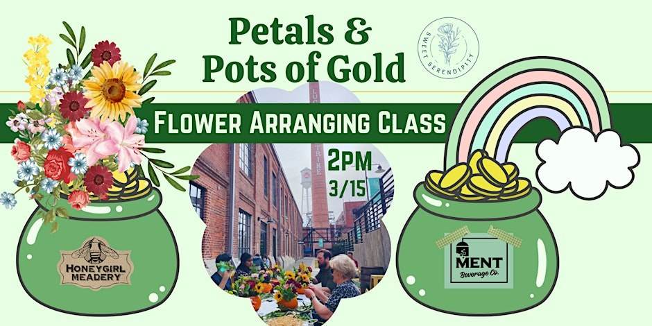 Grab a friend, get lucky, and learn the basics of floral design with beautiful blooms at Honeygirl Meadery! This class will have bright flowers, beautiful greenery, and lucky add-ons such as gold coins, glittery shamrocks, vibrant ribbon, and more.