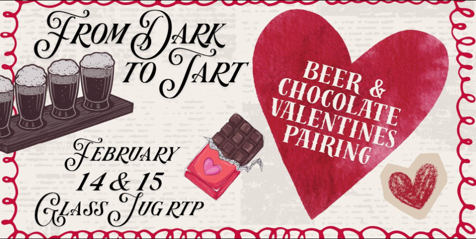 It's a match made in heaven - artisan chocolates and craft beers! For Valentines The Glass Jug is offering you the perfect date night opportunity - a sweetheart of a flight in an assortment of flavors to tempt you and your sweetie, including: