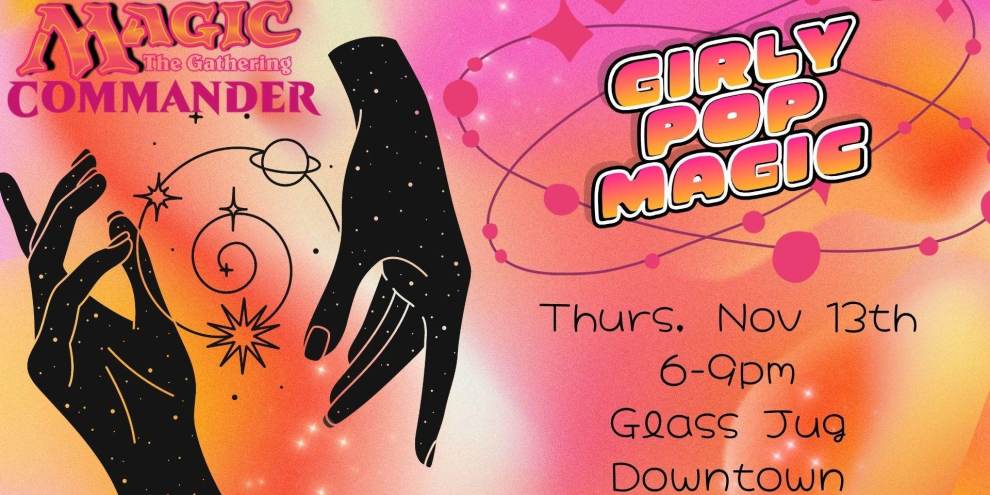 What is Girly Pop Magic? Why it's only the best thing ever! Join other femme, non-binary & gender expansive folks for a Magic: The Gathering - Commander focused afternoon. You'll love this casual, social, and wildly creative way to play the world's greatest card game! So grab a beverage and a pal (or meet new friends) and play along.