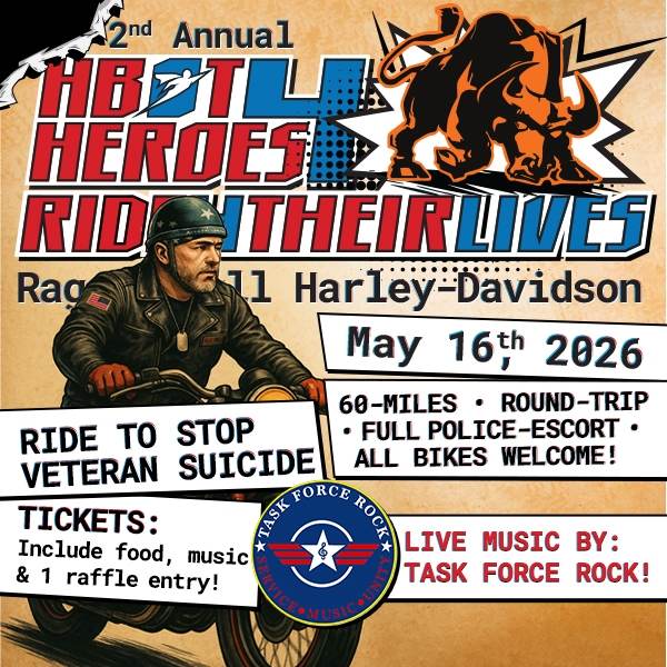 Join HBOT4Heroes for the 2nd Annual Ride 4 Their Lives, a charity motorcycle ride supporting veterans and first responders battling traumatic brain injury (TBI), PTSD, and suicidal ideation. All bikes and riders are welcome. Registration includes lunch, live music, and one raffle entry. Supporters are also welcome to attend the post-ride festivities.
