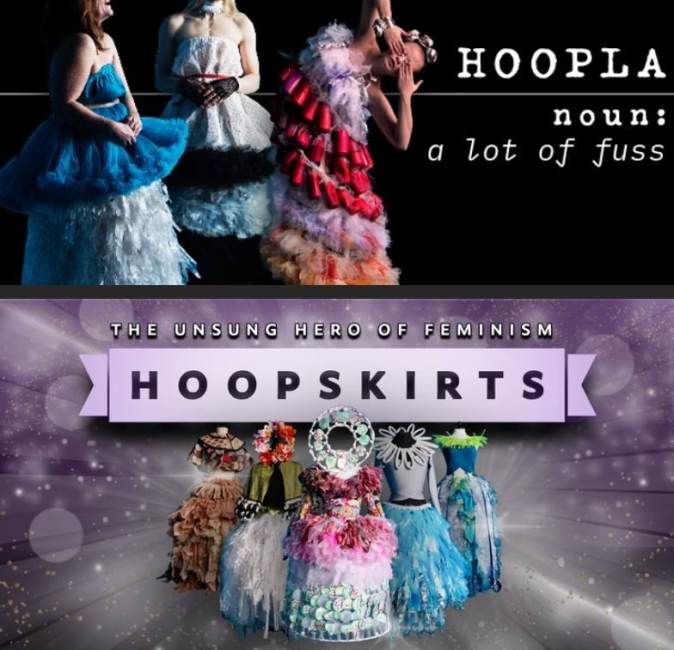 The bigger the hoops, the more influential the person. Taking up physical space has always been powerful— especially in a world where political space is limited. Internationally published artist Perrin Marie is creating a series of hoop skirts and accessories adorned with recycled materials that make noise— not always just a gentle swish swish, but the clink of bottles, the chime of cans, and a whole lot of presence. It's a fashionable revolution. Through this work, Perrin empowers individuals to take up space, skirt the issues, and make HOOPLA (get it?).
