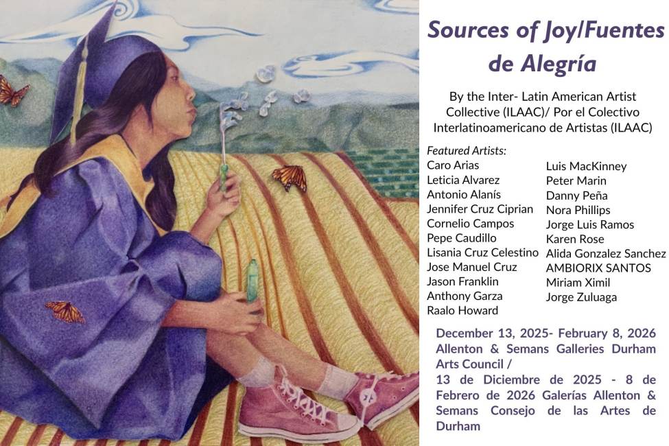 In the Allenton & Semans Galleries DAC will have "Sources of Joy" exhibit by the Inter Latin-American Artist Collective (ILAAC). The Inter Latin American Artist Collective (ILAAC) was founded on a simple but urgent belief: that Latin American artists in North Carolina and the South deserve spaces where their stories, identities, and creative visions can flourish without limitation. ILAAC emerged as an affirming, artist-led collective committed to visibility, solidarity, and creative sovereignty.