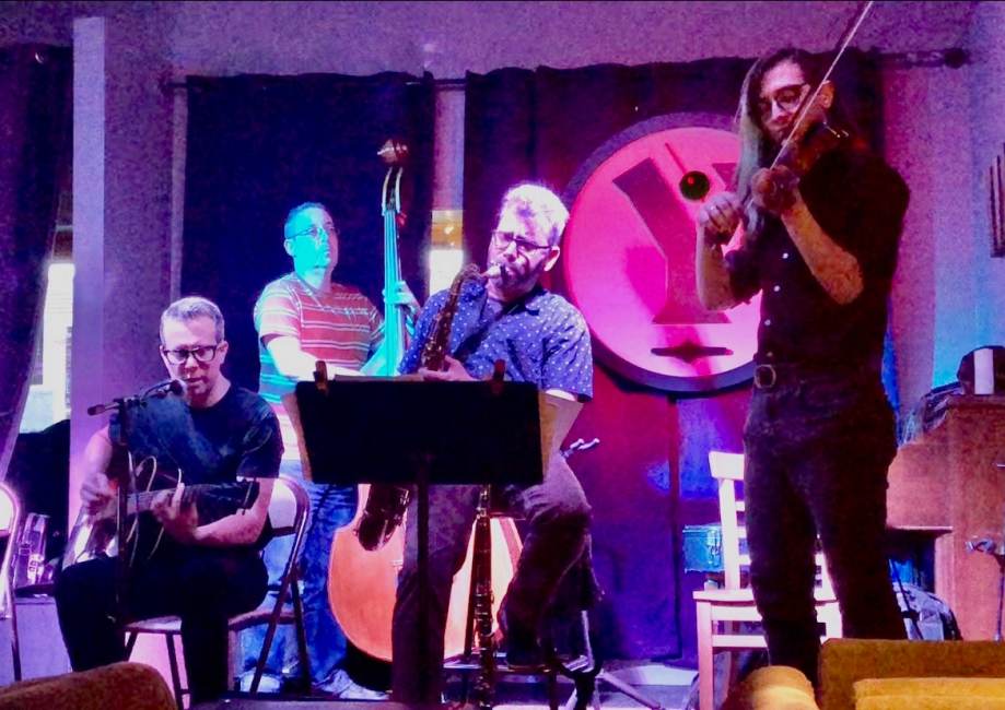 Les Trois Chats excites audiences with an energetic recipe of hot club jazz in the tradition of Django Reinhardt with a dash of the infectious rhythm of classic swing in the style of the Benny Goodman and Charlie Christian sextets. The trio then cleanses the palate with relaxing Brazilian bossa nova for a dish of satisfying musical flavors. Les Trois Chats gathers skilled musicians throughout the Triangle area including Robert Striegler on guitar and vocals, Jodi Miller on violin, Josh Brinkman on clarinet and sax, and Ian Finlay on upright bass. Join us for the evening and laissez les bon temps rouler! FB: LesTroisChatsBand