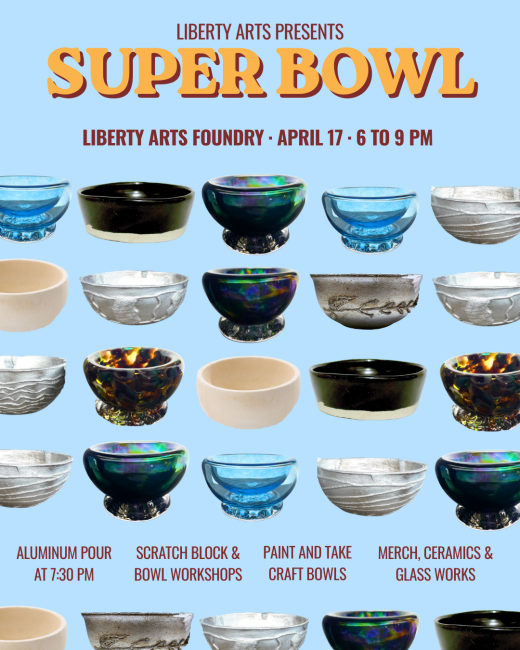 Join Liberty Arts for their very own “Super BOWL,” featuring their next Aluminum Pour in the Foundry in Durham Central Park.