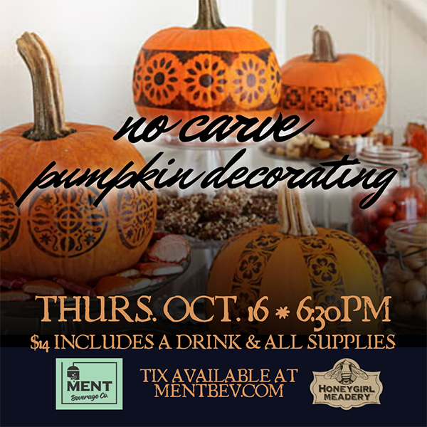 Join in for a cozy evening of pumpkin decorating with stencils, paint, and plenty of fall vibes—no carving mess required! They’ll provide the pumpkins and supplies, you bring the creativity. $14 includes a drink to sip on while you work. Preregistration requested to ensure they have enough pumpkins.