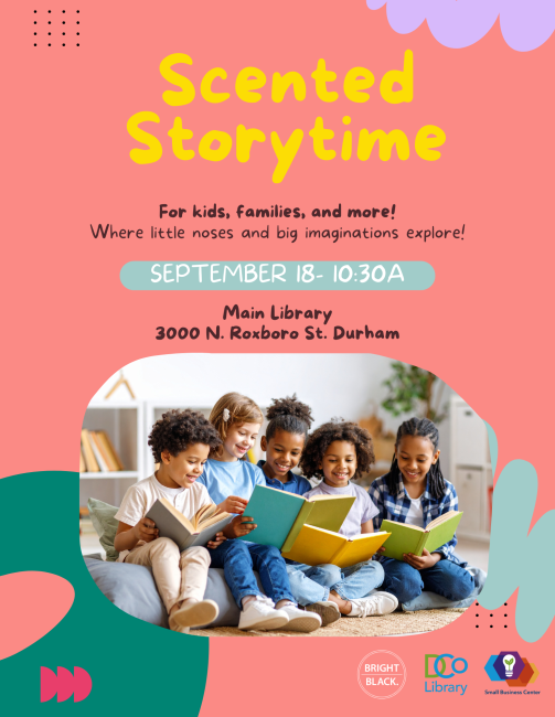 Bright Black Candle Co. is hosting Scented Storytime events at a branch of Durham County Library near you! Join in once a month as we embark on a storytelling journey through scent, song, and laughter. Create memories, spark your imagination, and come together with friends and family to embrace a monthly theme and craft a scented activity.
