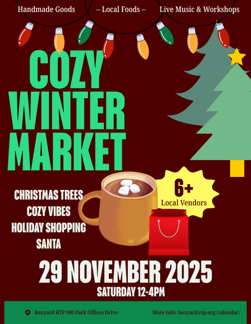 Small Business Saturday’s Cozy Winter Market at Boxyard RTP is your kickoff for the holidays with one-of-a-kind gifts and time to connect with local businesses.