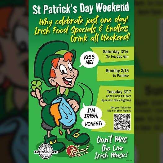 Celebrate St. Patrick's Day with The Federal & James Joyce all weekend. They'll be rocking all weekend on the back patio and biergarten.
