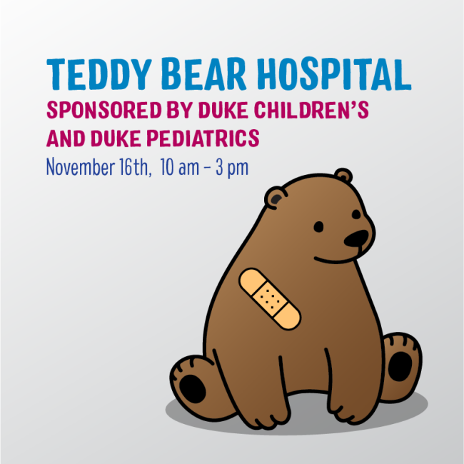 Bring your stuffed friend and learn about healthcare from the medical professionals visiting the Museum of Life and Science! Duke Children’s and Duke Pediatrics Teddy Bear Hospital will be open for guests to learn what to expect when visiting different doctors.