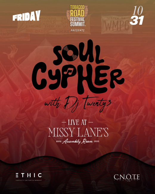 Soul Cypher is the brilliant melodic creation of Durham's own, DJ Twenty3. A masterful mix of R&B, Hip hop, and Soul ad-libs you can feel in your bones. Featuring Michael "GENERAL" Georges Jr. and The Souly Ghost, they're curating a vibe you can't find anywhere else. They're also showcasing other incredible local musicians like Tesh, Defacto Thezpian, and Flower In Bloom whose performances will leave you grasping at the stage for more.