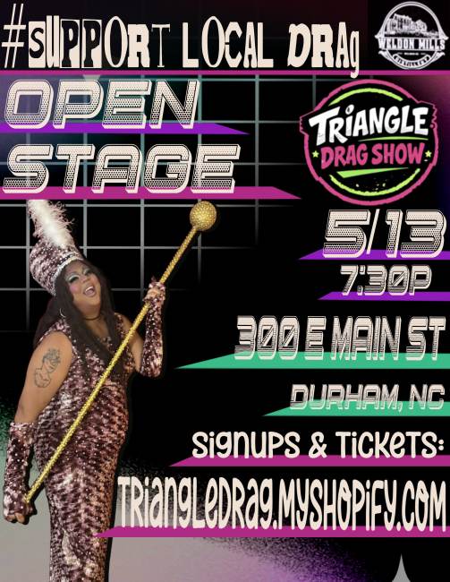 • Signups & Tickets: Visit triangledrag.myshopify.com to register for the open stage or grab your tickets.