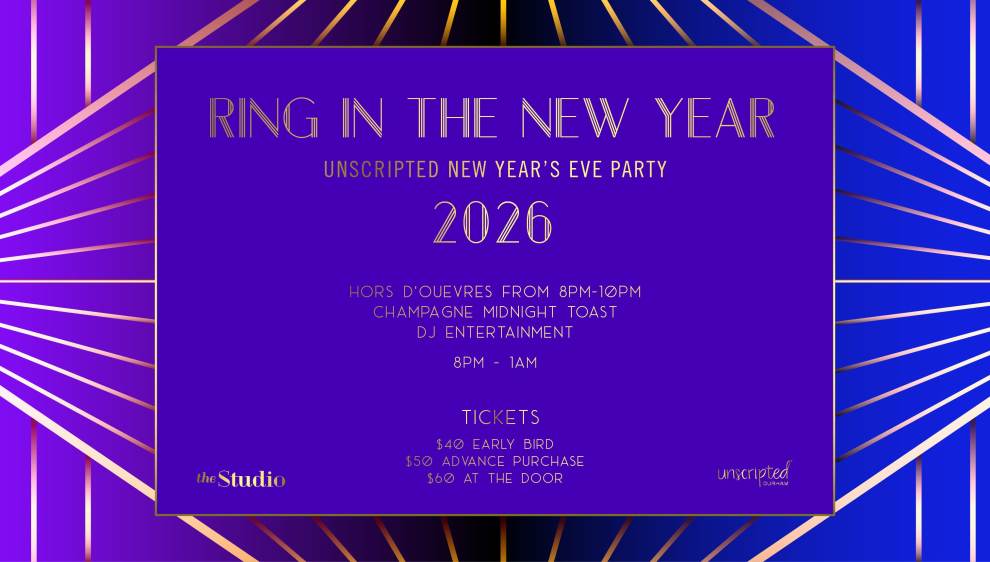 Ring in the new year in style at The Studio. Enjoy a night of celebration and music in great company. Dance the night away with live DJ, enjoy delicious drinks , and snack on complimentary hors d'oeuvres for the first three hours. Don't miss out on the hottest party in town! Grab your friends and celebrate at Unscripted Durham.
