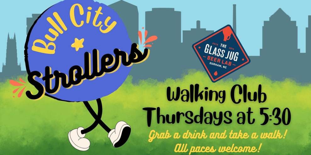 Join The Bull City Strollers every Thursday for a beer and a walk! Meet at the Jug at 5:30pm then go for a 30-40 minute stroll downtown with beers in hand, thanks to the Bullpen social district. We’ll wind up at the Jug at the end, where pitchers of brews are always $2 off on Thursdays. Strollers, kids, friendly dogs, and walkers of all speeds welcome. Stay tuned to social for updates on weather.