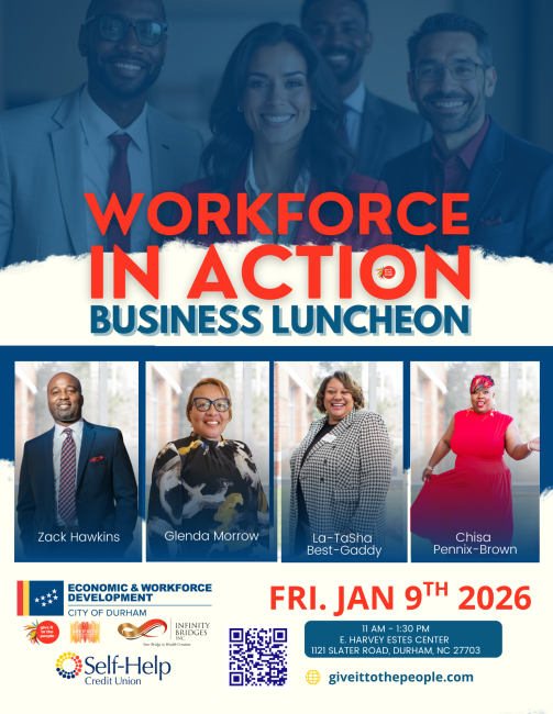 The City of Durham will convene employers, workforce leaders, and community partners for Workforce In Action, a business luncheon focused on strengthening hiring pipelines and workforce readiness across the Triangle.