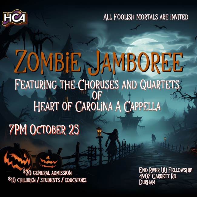 Enjoy a spooky & family friendly Halloween Themed Concert preformed in the A Cappella & Barbershop style! Music preformed by the choruses & quartets of 2025 NSC District Champion, Heart of Carolina A Cappella.